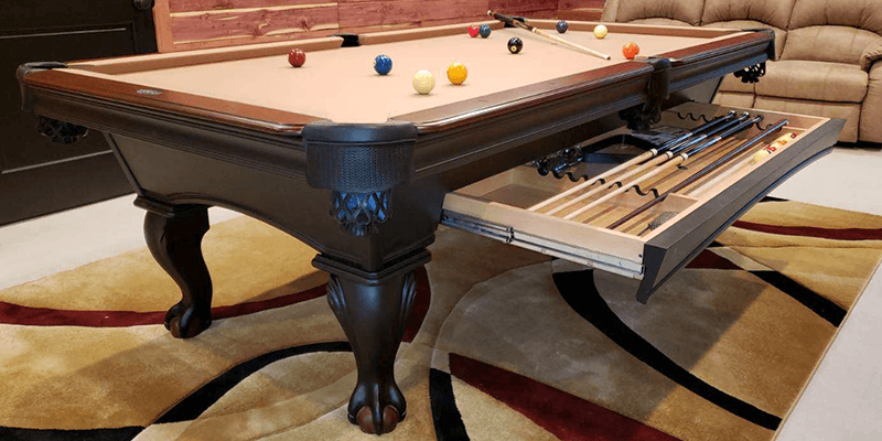 The Blackhawk Pool Table is made from Solid Tulipwood and features traditional style arched cabinet design with ball and claw style legs. All Olhausen Pool tables are hand-crafted at our 250,000 sq. ft. manufacturing facility in Portland, TN and feature Accu-Fast Cushions and our Lifetime Warranty.
