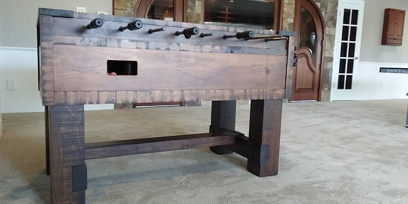 The perfect complement to your modern rustic game space is the commercial grade Breckenridge foosball table. Part of our rustic collection, the Breckenridge foosball is hand built from solid pine and given a unique distressed aged finish treatment. Heavy duty construction designed for commercial or residential players.