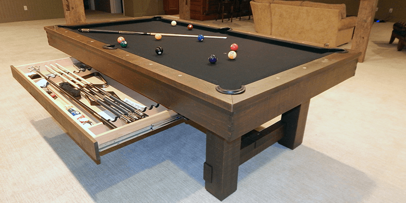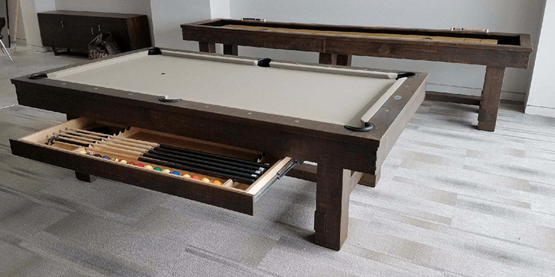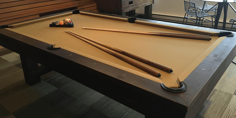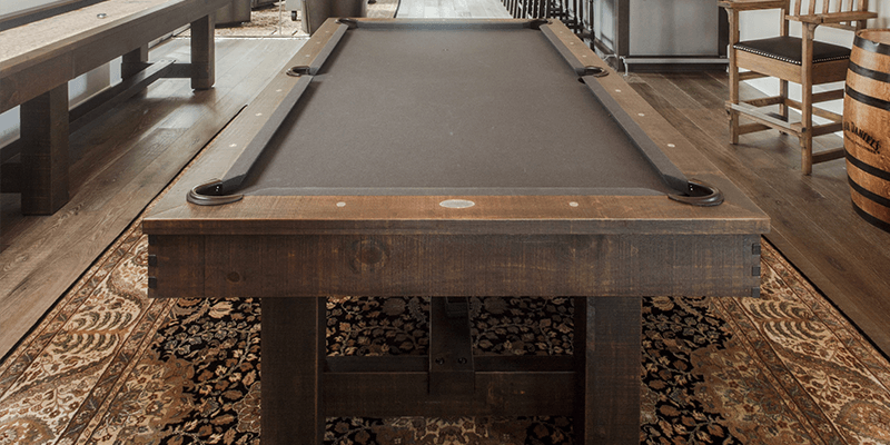 The Breckenridge Pool Table is made from Solid Pine and features natural characteristics of live edge wood along with bandsaw distressing, rustic bolts and genuine buffalo nickel sights. All Olhausen Pool tables are hand-crafted at our 250,000 sq. ft. manufacturing facility in Portland, TN and feature Accu-Fast Cushions and our Lifetime Warranty.