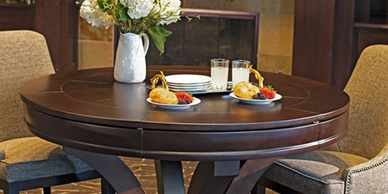 A beautiful games table that offers you the best of both worlds The poker table comes with 6 cupholders, chip trays, as well as convenient built-in compartments for all your gaming accessories. With one seamless flip, the table converts into a beautiful dining top.