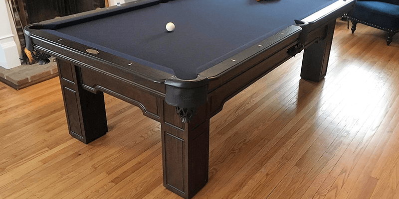 The Huntington Pool table is made from Solid Wood and features flat paneled apron with routered detail with floor to slate leg design. All Olhausen Pool tables are hand-crafted at our 250,000 sq. ft. manufacturing facility in Portland, TN and feature Accu-Fast Cushions and our Lifetime Warranty.
