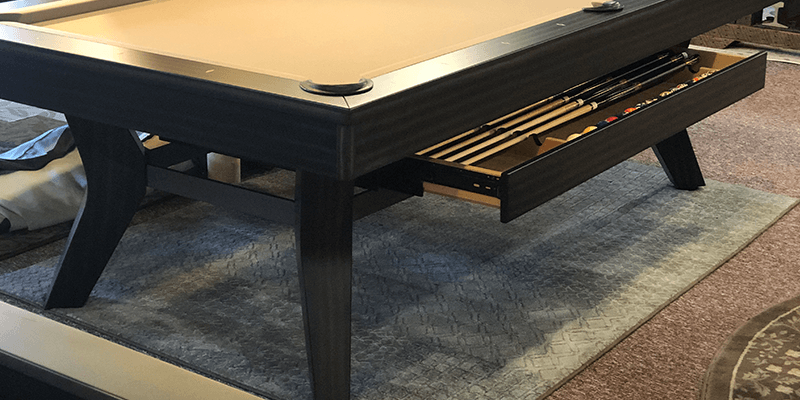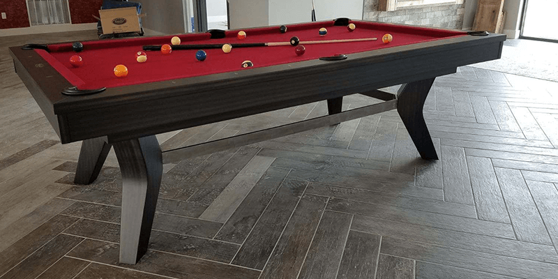 The Laguna Pool table is made from Solid Wood and features modern style enclosed rail system with flat paneled cabinet and turned legs with metal cross bar. All Olhausen Pool tables are hand-crafted at our 250,000 sq. ft. manufacturing facility in Portland, TN and feature Accu-Fast Cushions and our Lifetime Warranty.