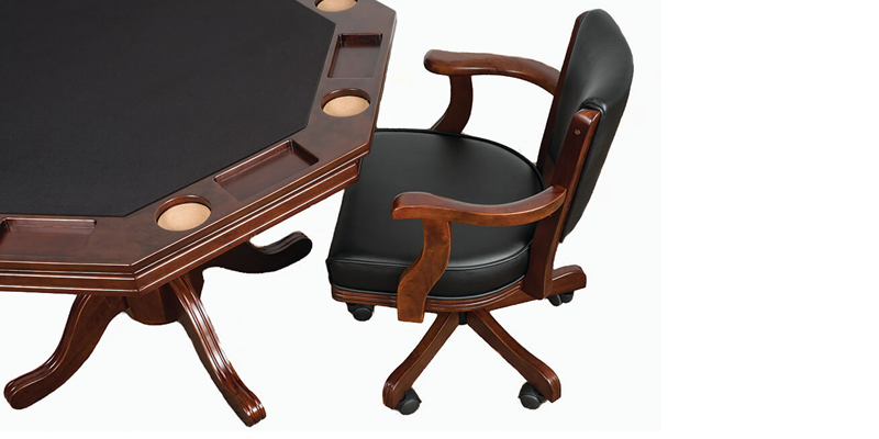 The game tabletop has eight beverage holders with large chip trays and a convenient built-in compartment for storing all your gaming accessories.