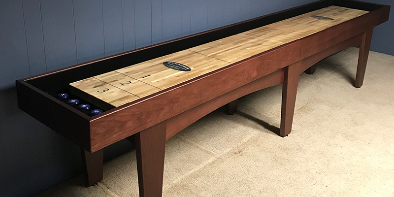 The Pavilion Shuffleboard Table is made from Solid Wood and features flat paneled cabinet and pedestal base legs. All Olhausen Shuffleboards are hand-crafted at our 250,000 sq. ft. manufacturing facility in Portland, TN.
