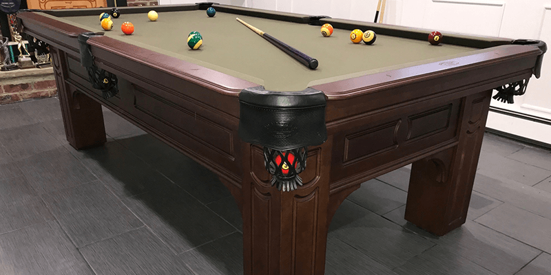 The Remington pool tables is made from Solid Wood and features flat paneled apron with routered detail with floor to slate leg design. All Olhausen Pool tables are hand-crafted at our 250,000 sq. ft. manufacturing facility in Portland, TN and feature Accu-Fast Cushions and our Lifetime Warranty.
