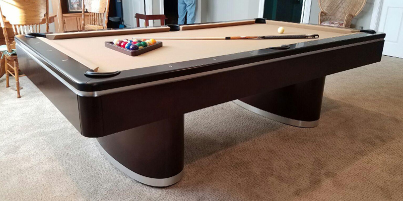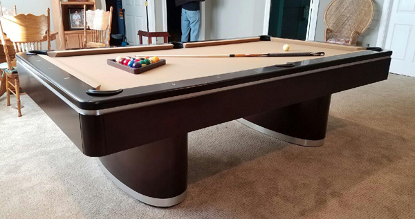 The Sahara Pool table features modern style enclosed solid wood rail system with flat paneled apron with pedestal base legs with metal reveals on legs and apron. All Olhausen Pool tables are hand-crafted at our 250,000 sq. ft. manufacturing facility in Portland, TN and feature Accu-Fast Cushions and our Lifetime Warranty.
