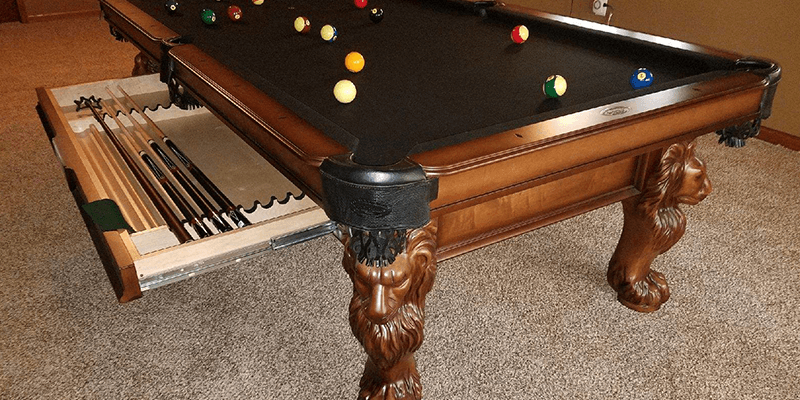 The St. George Pool table is made from Solid Wood and features ornate carving details on apron, frame and legs. All Olhausen Pool tables are hand-crafted at our 250,000 sq. ft. manufacturing facility in Portland, TN and feature Accu-Fast Cushions and our Lifetime Warranty.