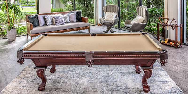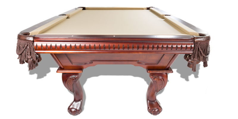 The dentil molding on the blinds and sturdy construction makes this pool table one of our top-selling models. This table comes in two finishes, Mahogany or Mocha.