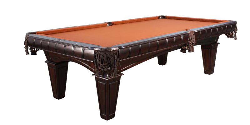 A beautiful, dark brown pool table crafted out of African wood. The wood is finished in a luxurious dark chocolate and has a choice of two leg styles: Tapered or Ball & Claw.