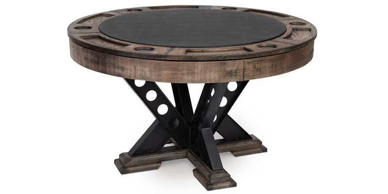 The game tabletop has six beverage holders with large chip trays and a convenient built-in compartment for storing all your gaming accessories.